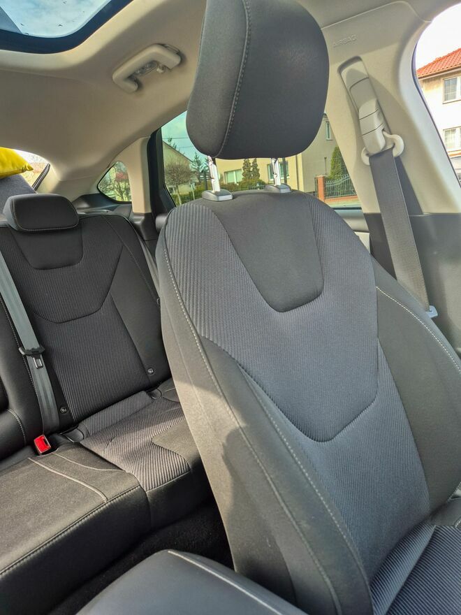 Wersja Titanium z tekstylną tapicerką 5 drzwi, 5 miejsc Tempomat i ogranicznik prędkości Aktywny asystent pasa ruchu i rozpoznawanie znaków Przednie i tylne czujniki parkowania Podgrzewane fotele przednie, Dwustrefowa automatyczna klimatyzacja System Start-Stop, automatyczne światła i wycieraczki Podgrzewana przednia szyba, światła do jazdy dziennej Podgrzewana kierownica Dach panoramiczny Kamera cofania Czujniki parkowania Asystent parkowania Asystent pasa ruchu Asystent ruszania pod górkę Doświetlanie zakrętów Elektryczne szyby (wszystkie) Przyciemniane tylne szyby Elektrycznie składane lusterka Dodatkowe atuty: Bezwypadkowy