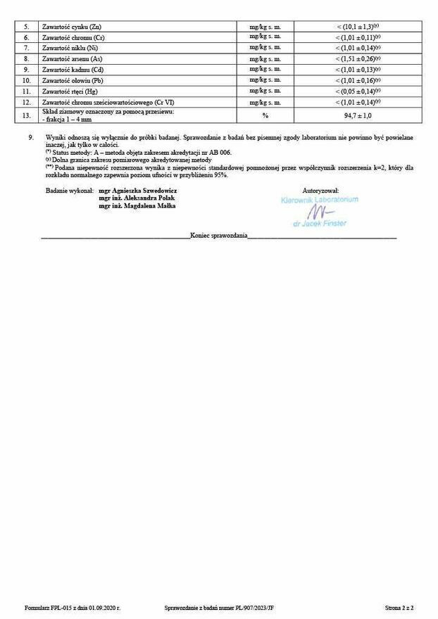 Pełna dokumentacja - w załączeniu wyniki badań POLSKIE CENTRUM BADAŃ I CERTYFIKACJI S.A.